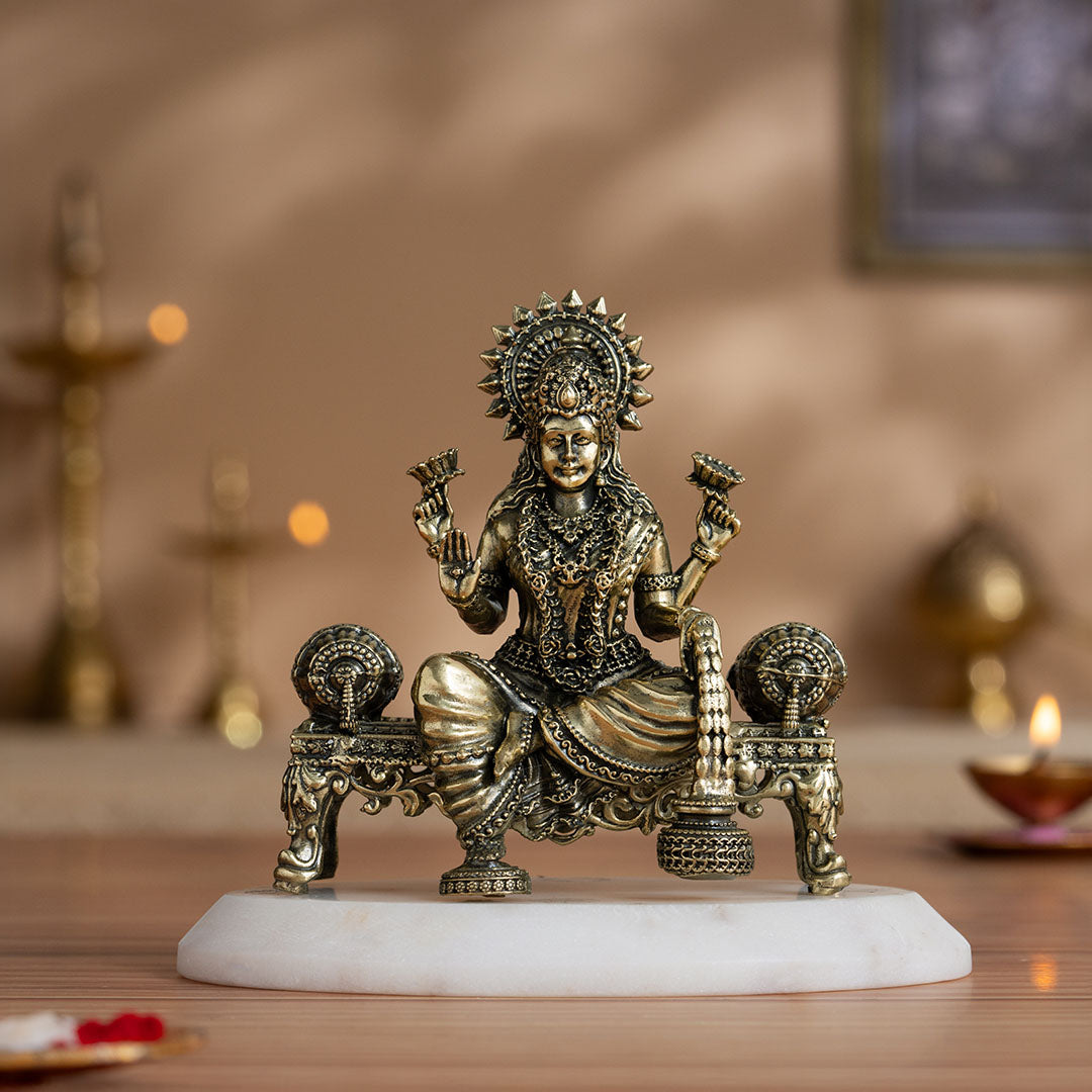 Antique brass idols represent timeless beauty and spiritual energy. The finish gives them a vintage, heritage appeal.