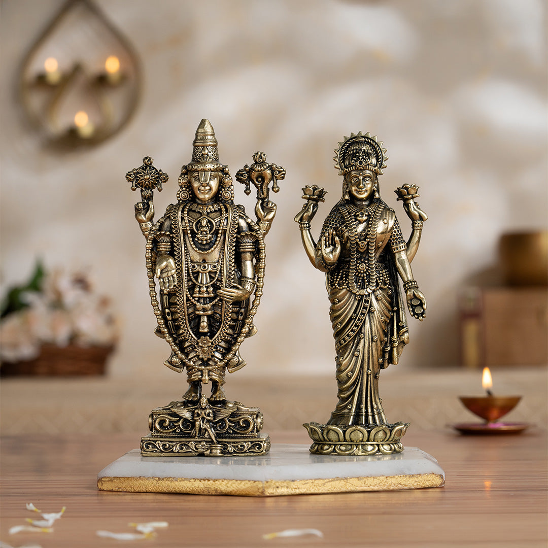 Brass Lord Balaji and Mata Lakshmi For Pooja Room - 6 Inch