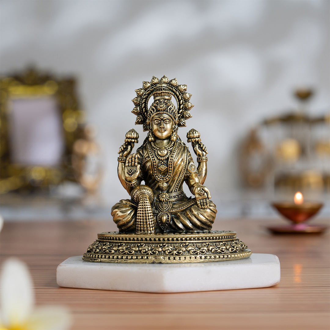 Both are excellent. A brass Lakshmi murti is traditional and long-lasting, while a marble dust idol gives a soft, devotional aesthetic. Choose based on your preference for weight, color, and feel.