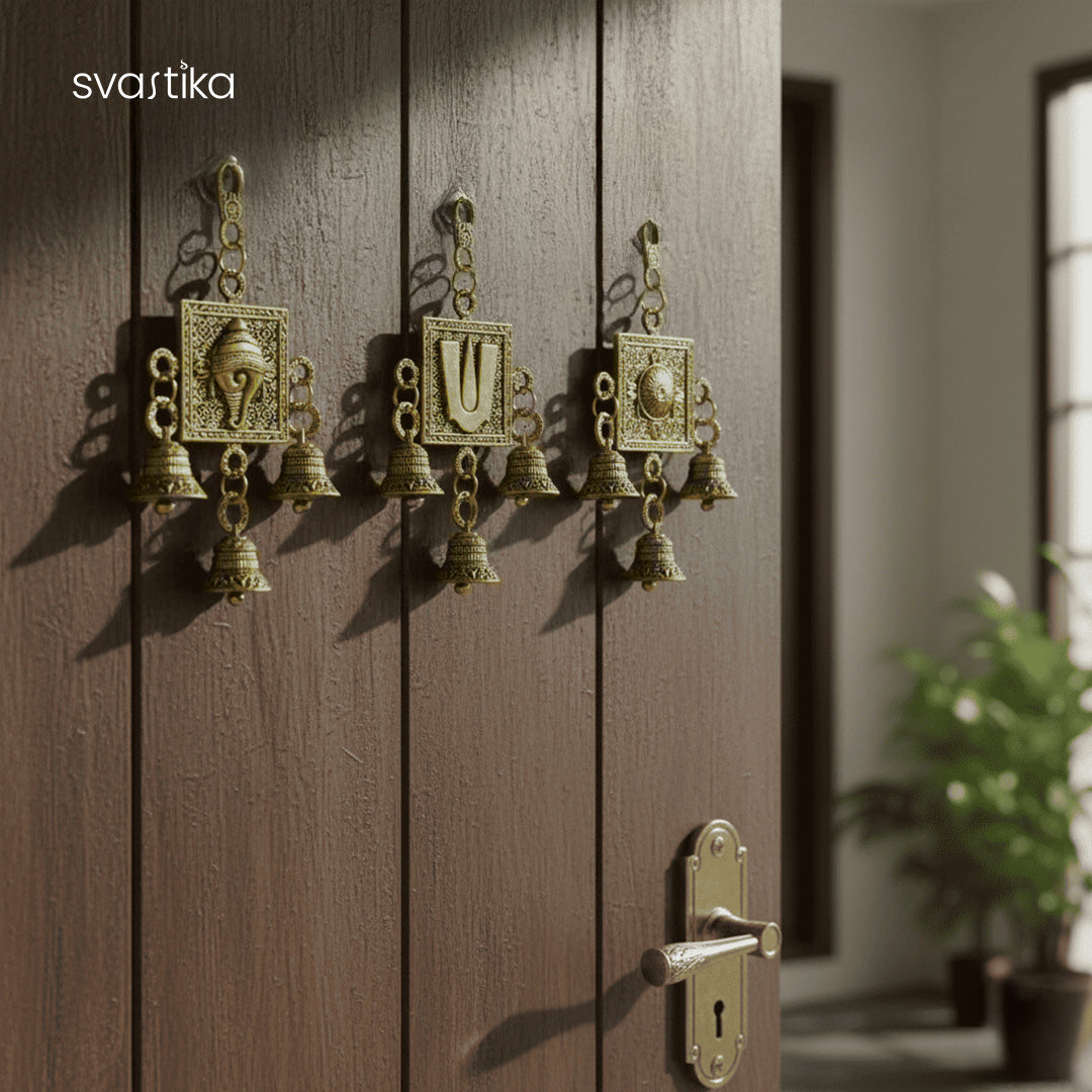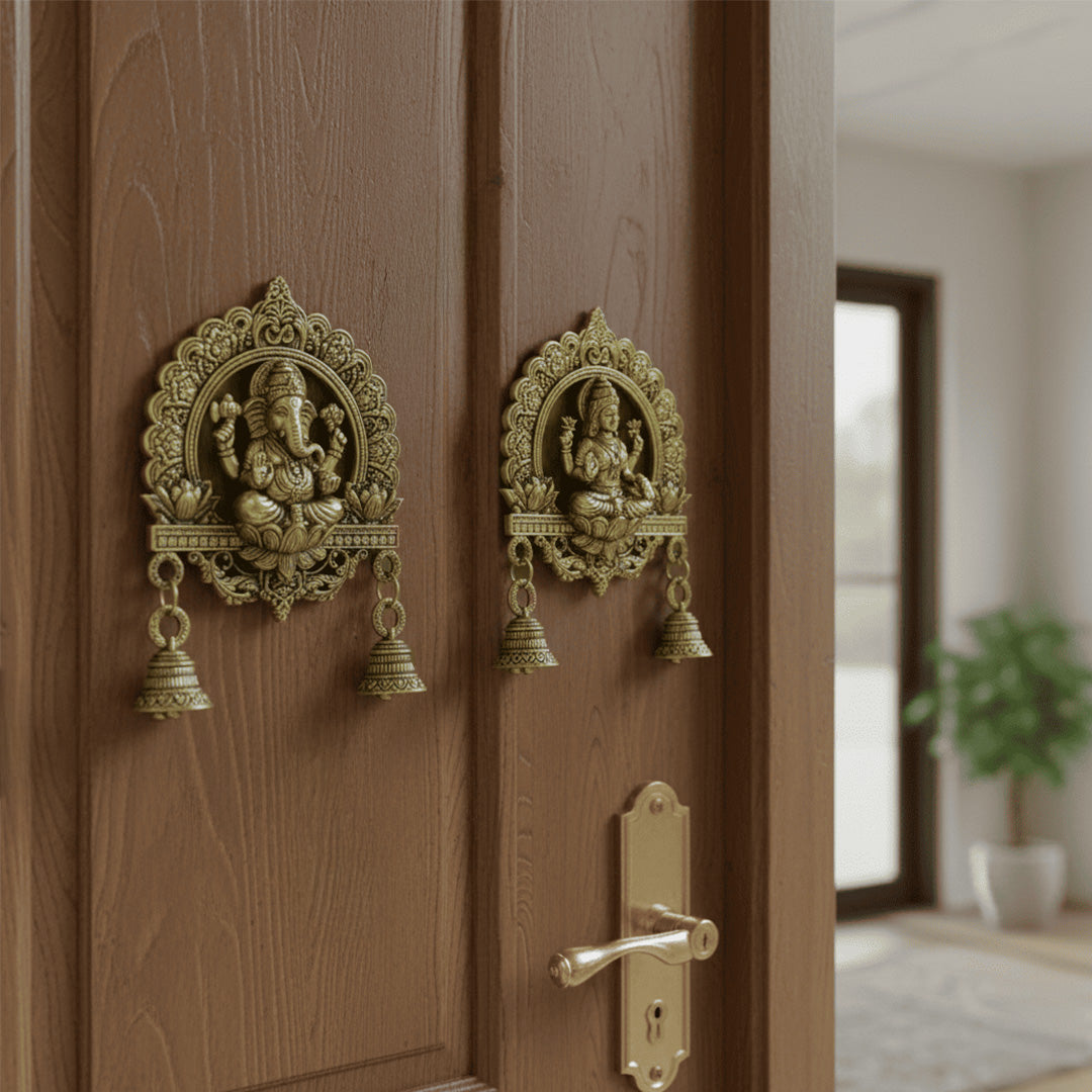 Brass Lakshmi Ganesh Saraswati Latkan With Bells