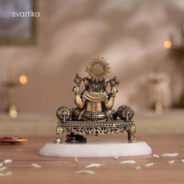 Brass Ganesh Idol Virajman On Sinhasan (4 Inch)