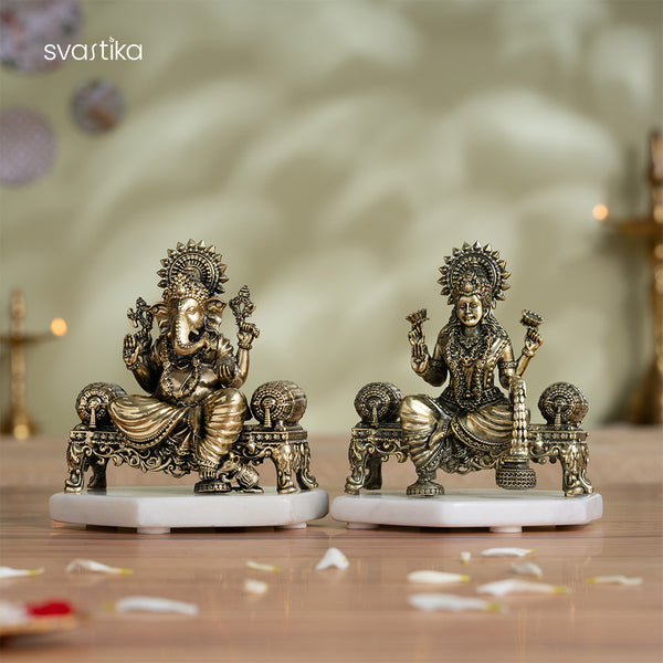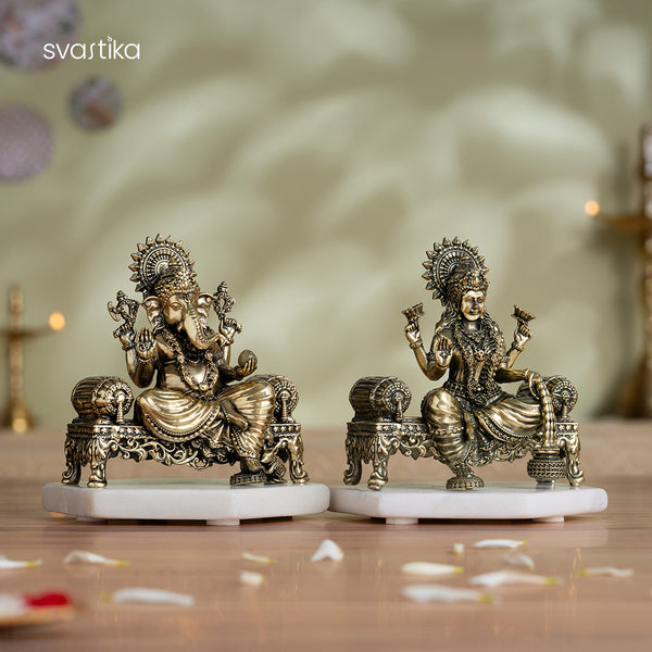 This brass Lakshmi Ganesh idol set is ideal for pooja rooms, serving as both a spiritual centerpiece and an elegant decor item. As affordable Diwali gifts or housewarming gifts, they bring divine energy to any space.