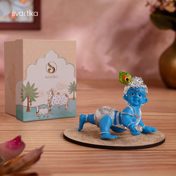 Ideal as a heartfelt gift for Janmashtami or to celebrate the arrival of a newborn, it promises to infuse your sacred space with the divine energy of Krishna's eternal love and childlike charm.