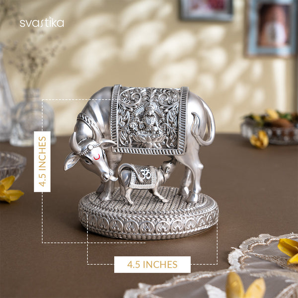 Silver plated Kamdhenu Cow with Calf Idol
