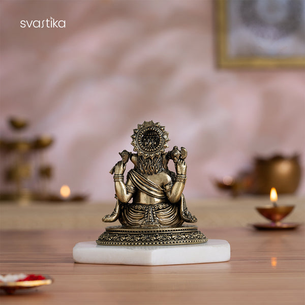 The small Ganesha murti, with its four symbolic arms and loyal Mushakraj, is perfect for Ganpati idols for Ganesh Chaturthi or year-round display. Its compact size makes it versatile for various settings.
