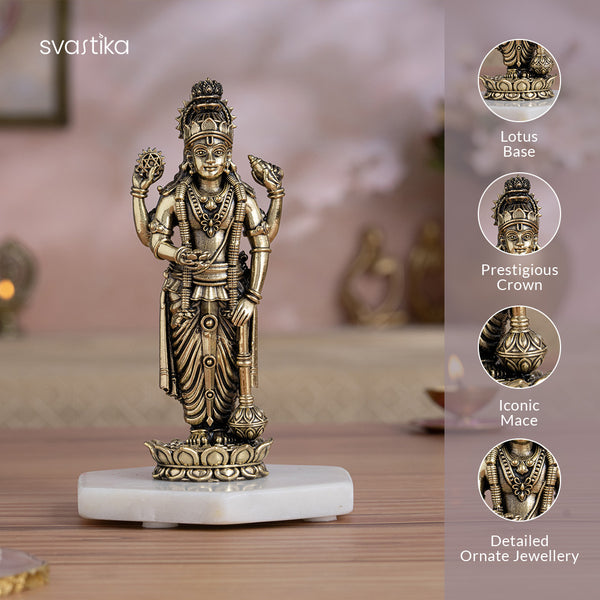 Enhance your space with this magnificent Brass Vishnu Murti, crafted to add timeless elegance and serene artistry to your decor.