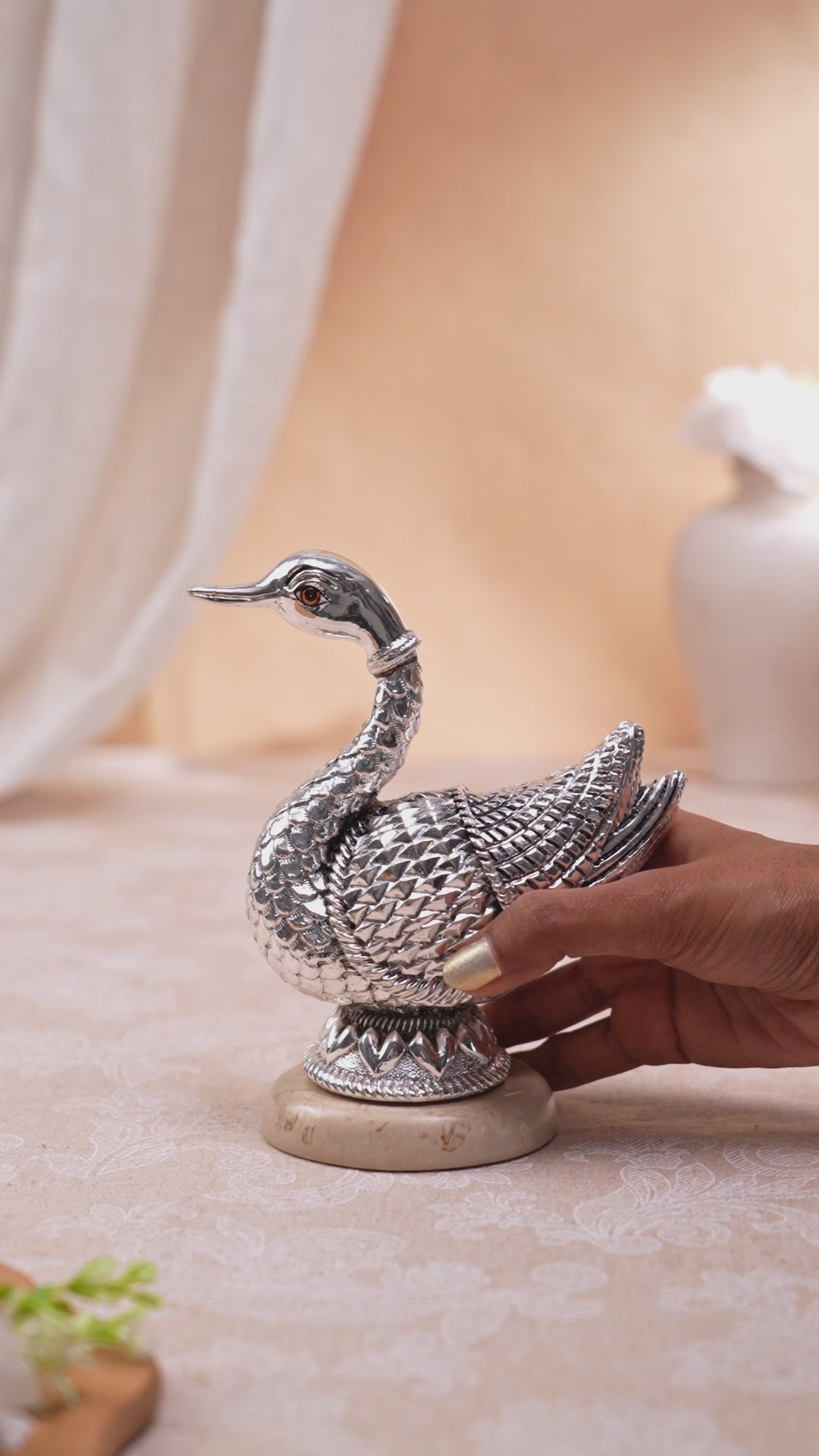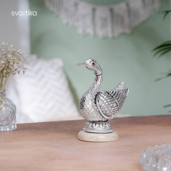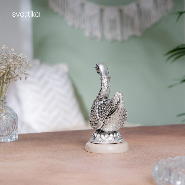 Add a touch of elegance and divinity to your home with this beautifully crafted Silver Plated Swan Idol.