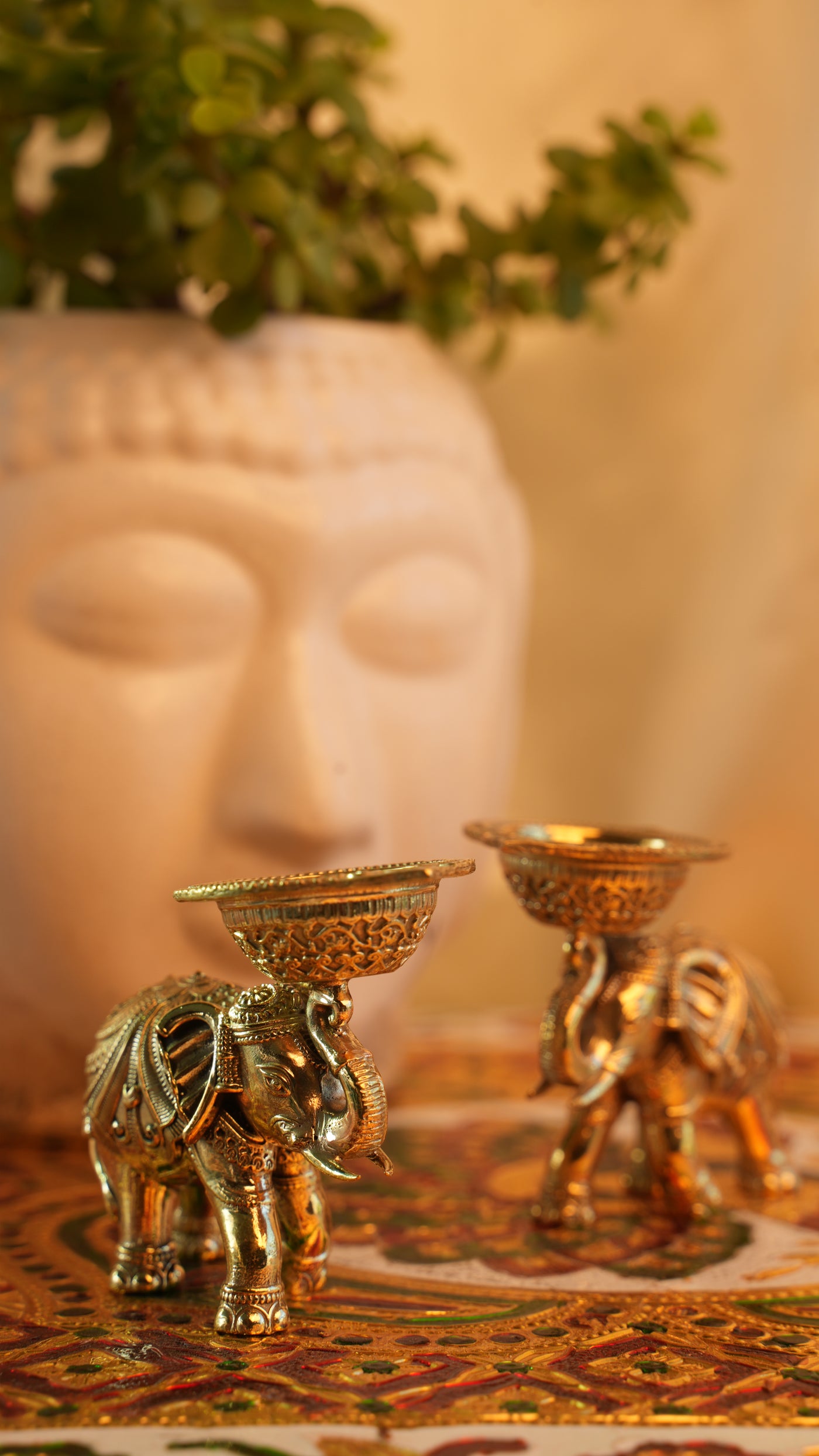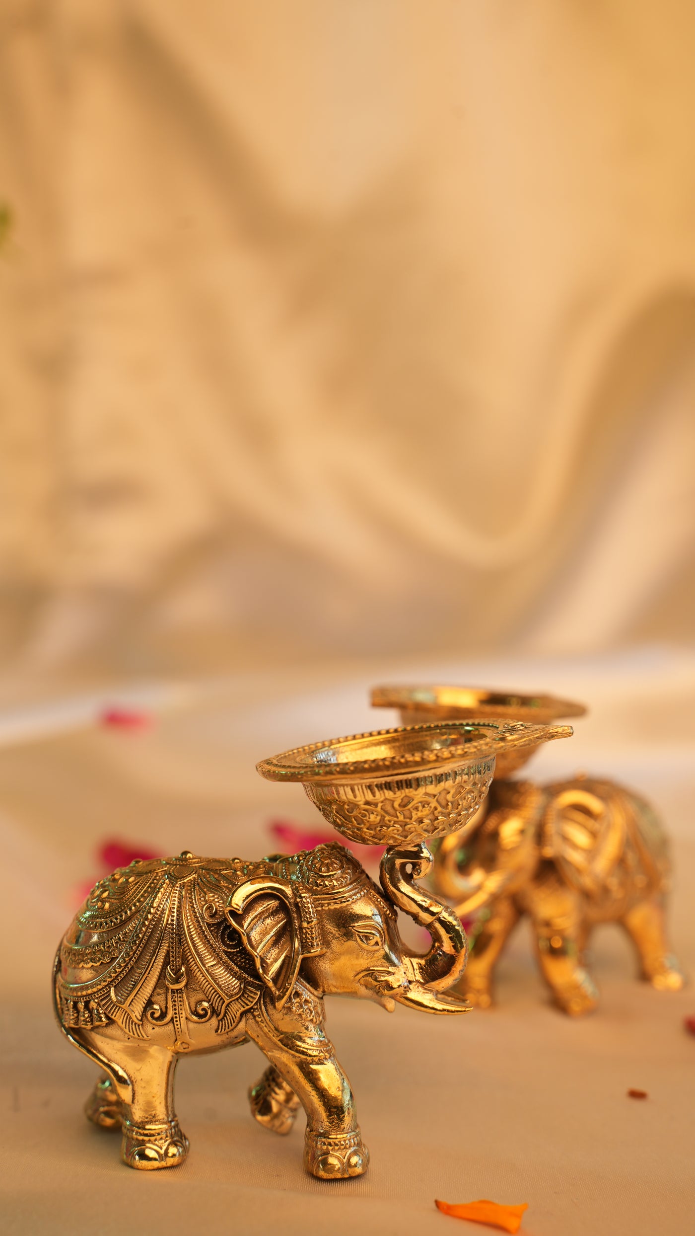 The Brass Elephant Diya is a beautifully crafted decorative and functional piece, perfect for enhancing your festive and spiritual ambiance. Made from high-quality brass, symbolizing wisdom, strength, and prosperity.