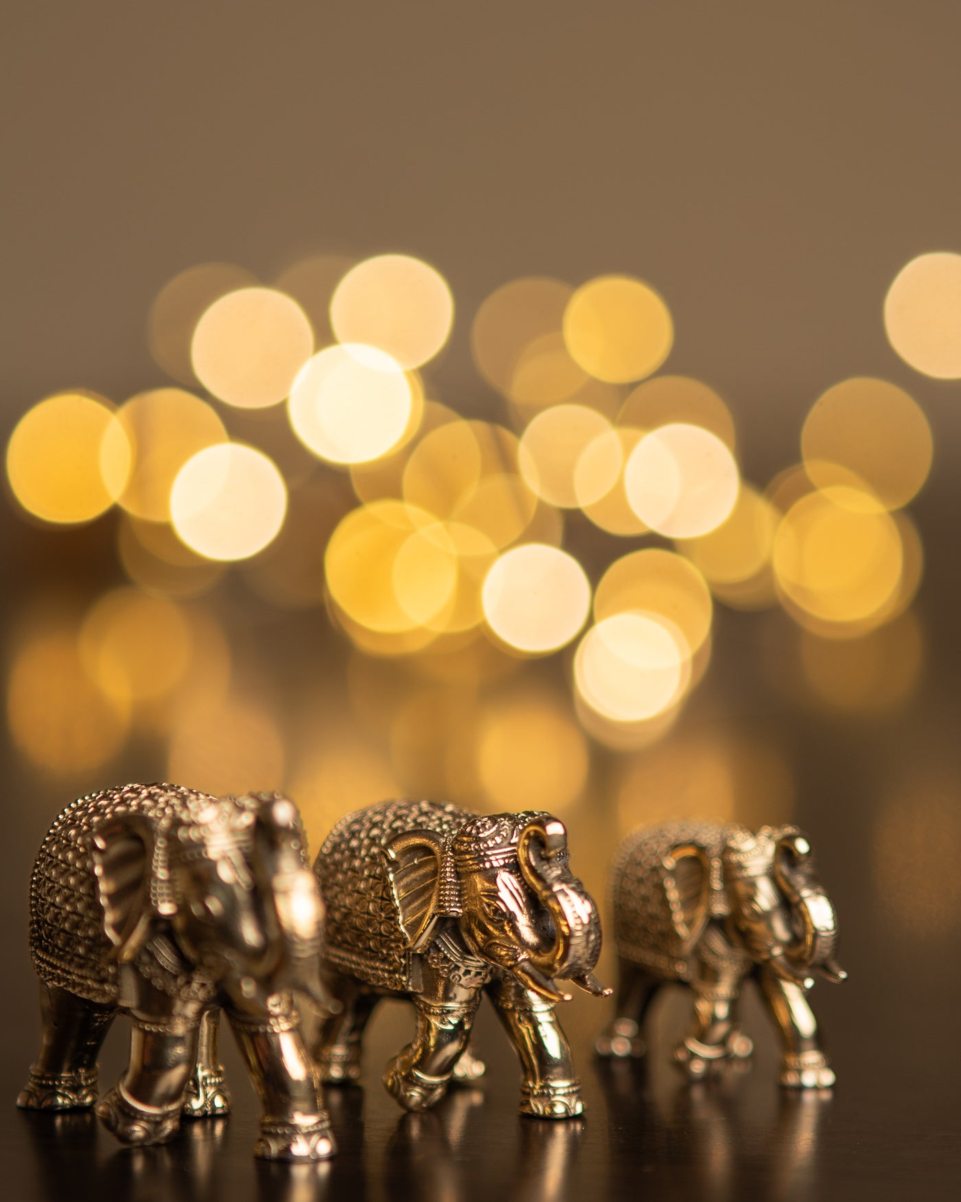 Brass Vastu Elephant Set of 2 | Trunk Up Pair for Prosperity, Luck & Strength - 1.50 inch