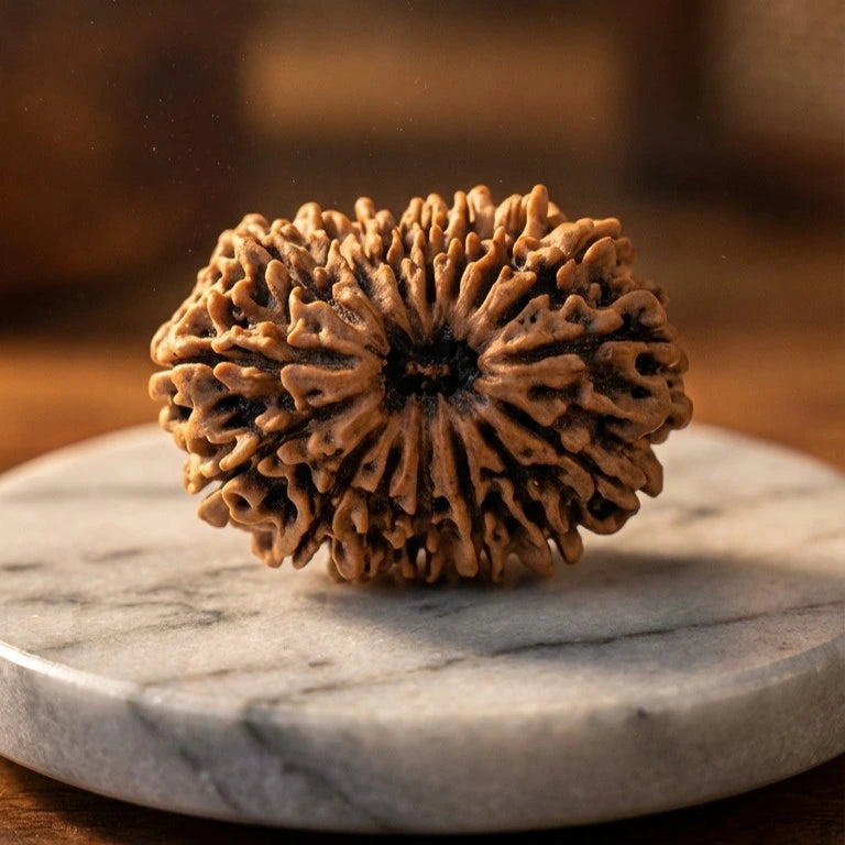 The 16 Mukhi Rudraksha carries the divine grace of Shri Ram and is traditionally linked with the Moon โ the planet of emotions and psychological stability. This sacred bead is regarded as a symbol of protection, dignity, and harmonious living.