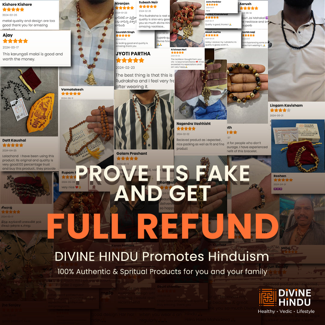 Divine Hindu take immense pride in offering you 100% genuine and original Rudraksha beads. Each bead is meticulously sourced and authenticated to ensure its purity and effectiveness. Trust in our commitment to bring you the highest quality Rudraksha, enhancing your spiritual journey with authenticity and integrity. Choose Divine Hindu for an unparalleled spiritual experience.