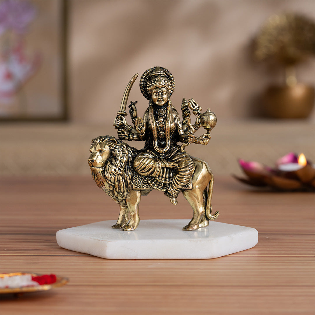 Sherawali Mata Gold Marble Murti: A compact idol perfect for personal devotion or gifting.