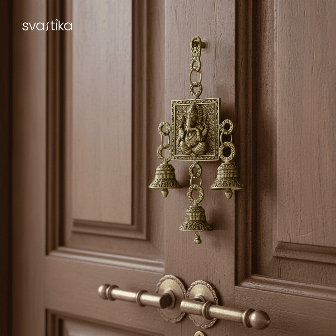 Brass Ganesh Lakshmi Saraswati Latkan With Bells