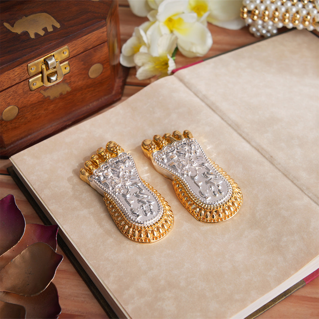 Maa Lakshmi's Charan Paduka - Gold & Silver Plated (3 Inch)