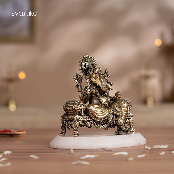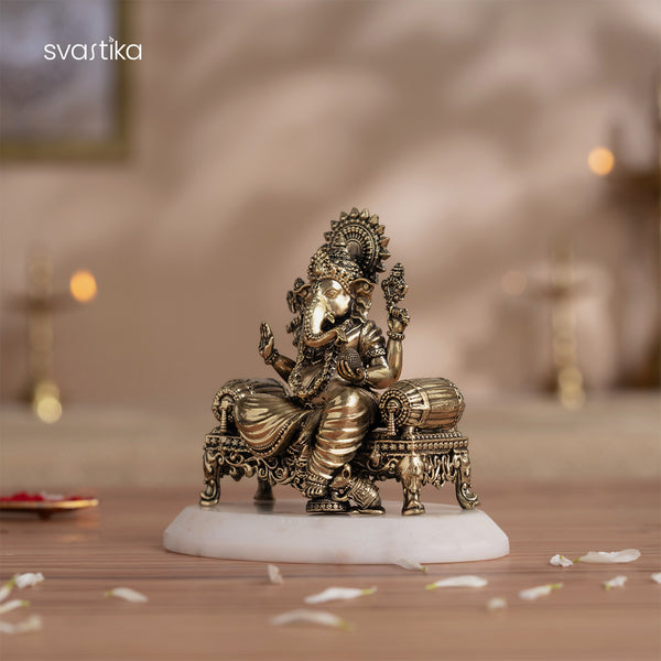 Brass Ganesh Idol Virajman On Sinhasan (4 Inch)