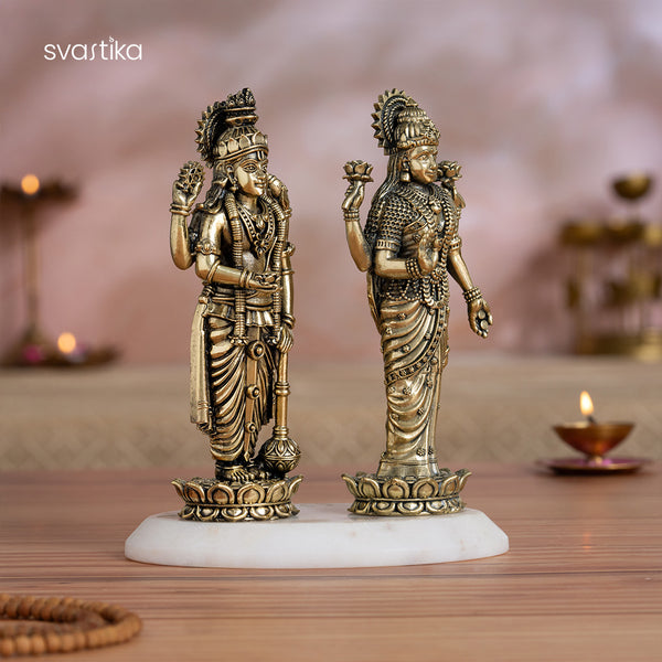 Brass Standing Vishnu Lakshmi Idol Pair (6 Inch)