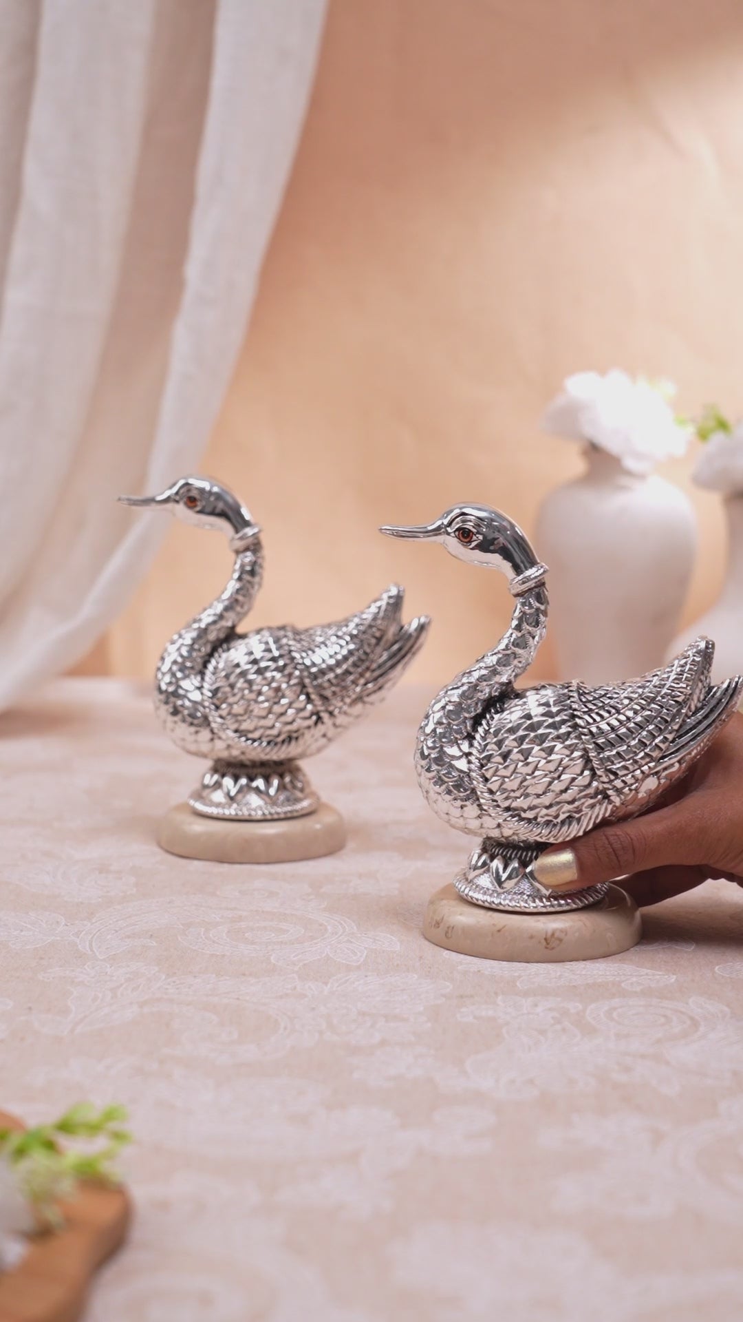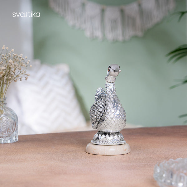 Add a touch of elegance and divinity to your home with this beautifully crafted Silver Plated Swan Idol.