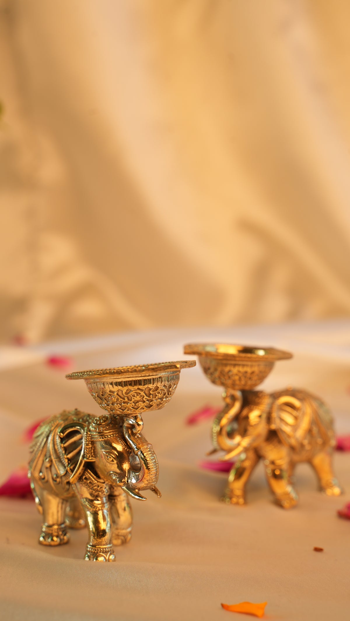 Handcrafted Brass Elephant Diya for Diwali Pooja - Single
