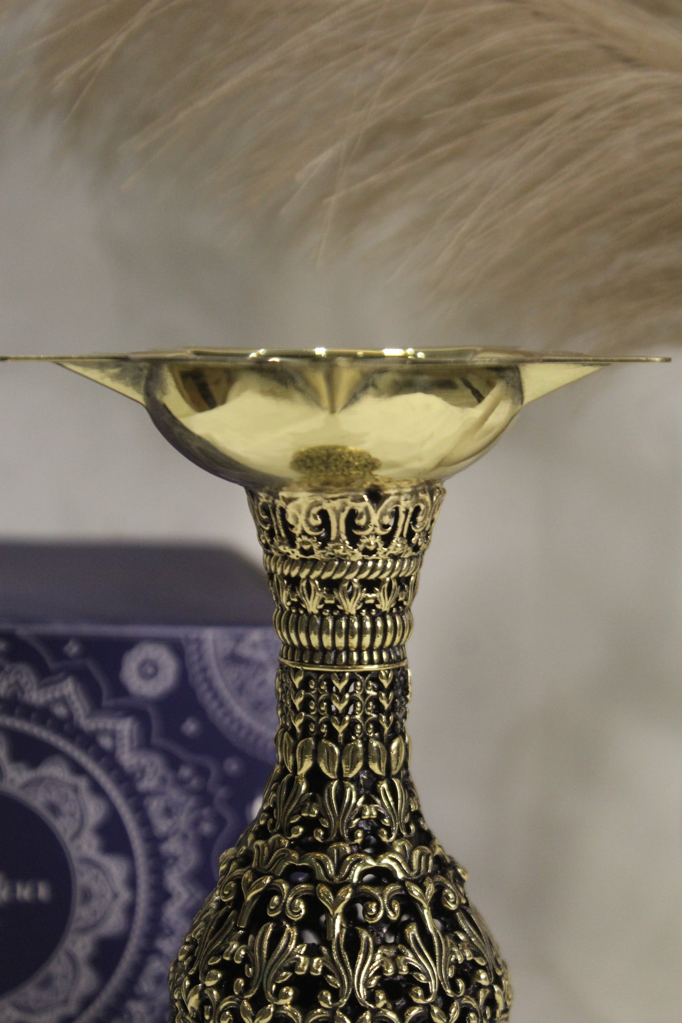 Bring divine radiance to your home with this exquisitely handcrafted Brass Deepak, a perfect blend of tradition and artistry. Designed with intricate floral carvings and an elegant antique finish, this oil lamp embodies timeless Indian craftsmanship.