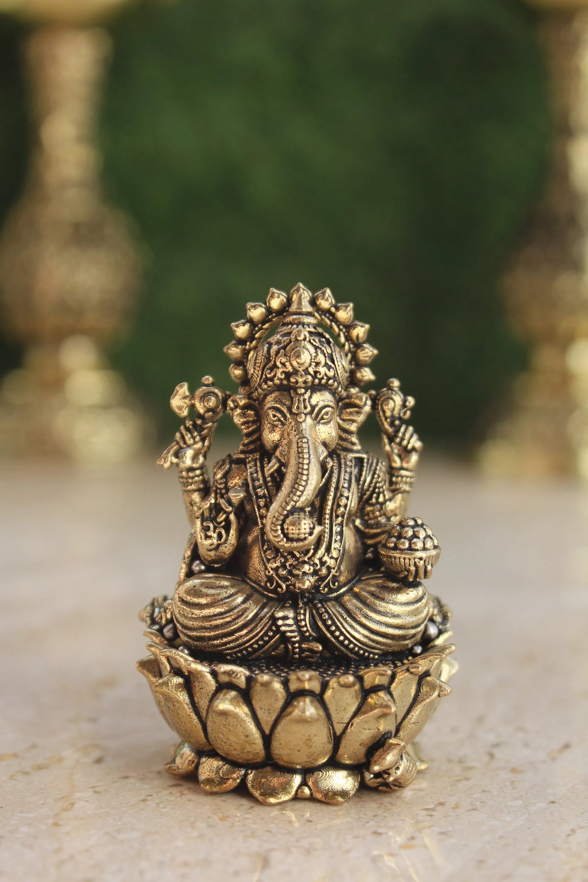 Crafted from premium quality brass, this 2.5-inch idol set features intricate detailing and traditional craftsmanship that reflects Indian heritage. The golden brass finish adds an elegant touch to your puja room, mandir, office desk, or living space.