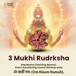 Ruling deity: The ruling deity of the Three Mukhi Rudraksha is Lord Agni (Fire God). Just as fire burns impurities, this bead helps to destroy negative energies, past karma and sins.